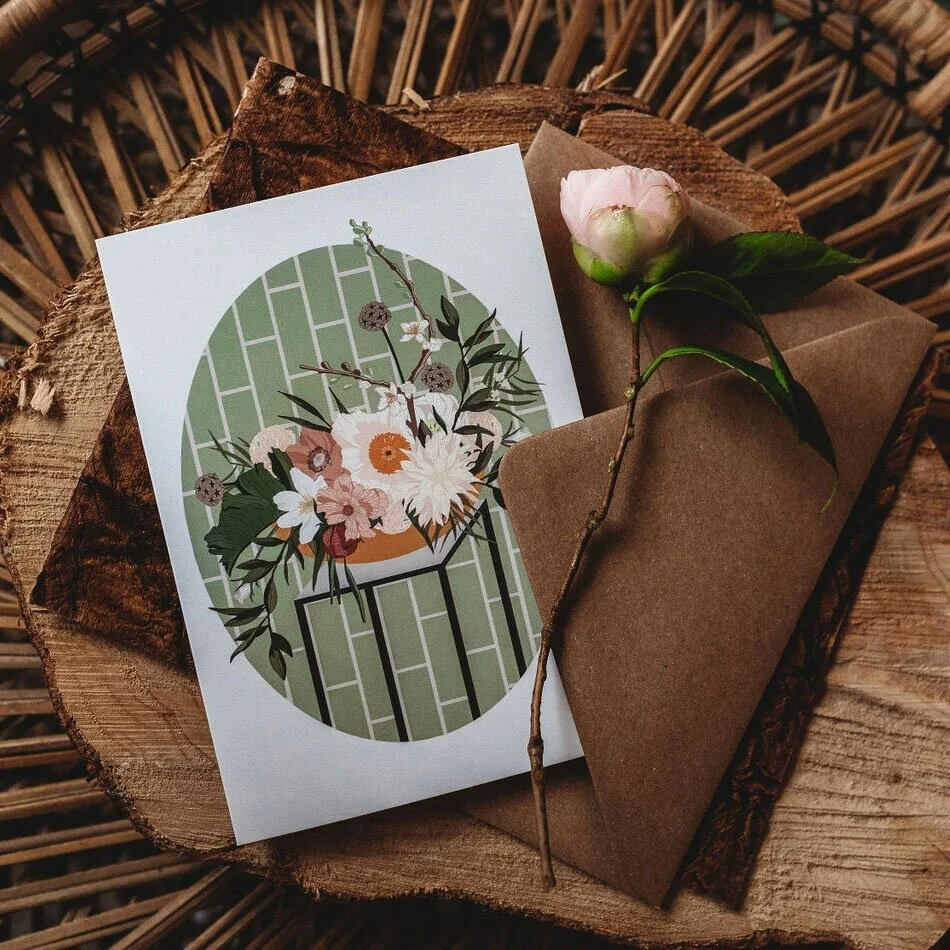 And this season includes my biggest new product launch to date, with 8 new cards, 4 prints and a new gift wrap design to get your hands on. This collection evokes a sense of calm and relaxation with a fresh, serene colour palette of pale olive green and muted pinks and illustrated greenery galore to help ease us out of lockdown restrictions calmly and also to give us a bit of escapism.